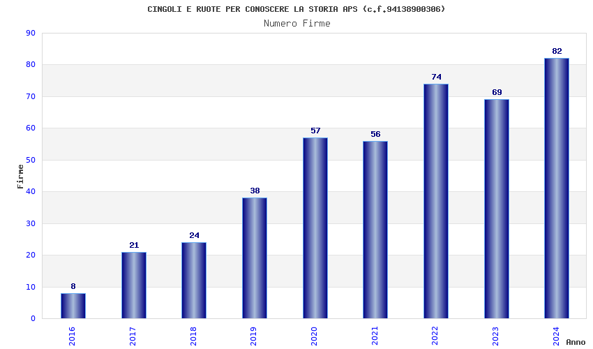 | Anno | Firme | Importi | Media | Naz. | Reg. | Prov. | Comu. |