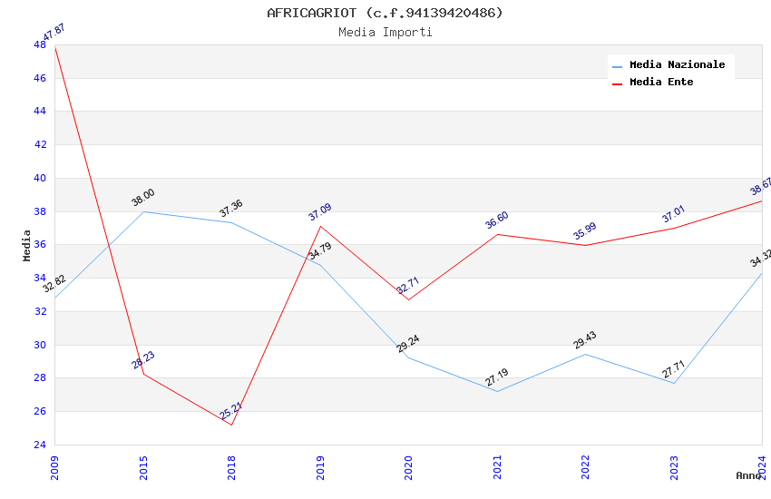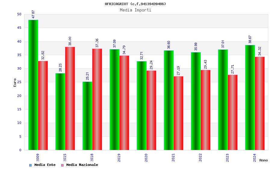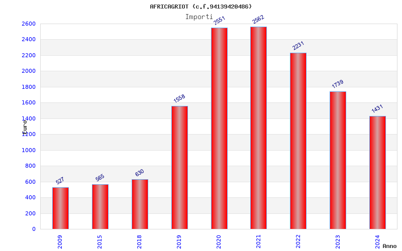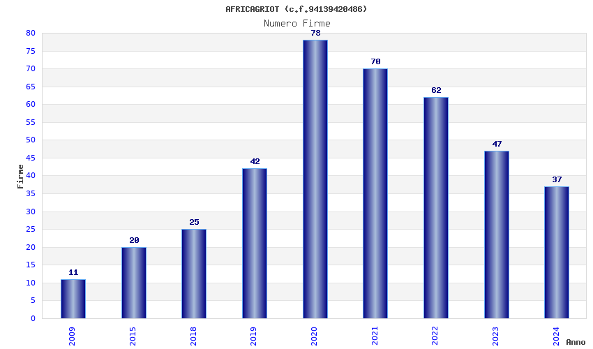 | Anno | Firme | Importi | Media | Naz. | Reg. | Prov. | Comu. |