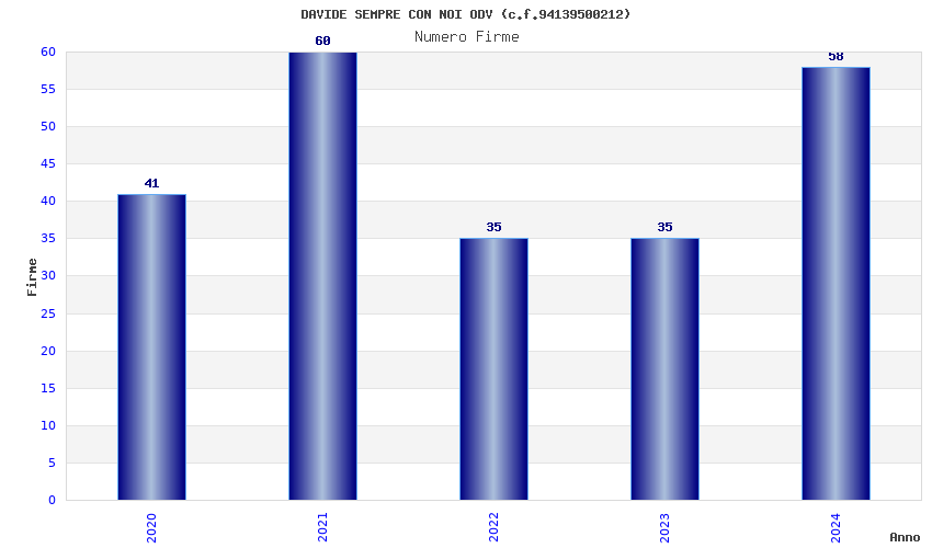 | Anno | Firme | Importi | Media | Naz. | Reg. | Prov. | Comu. |