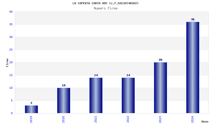 | Anno | Firme | Importi | Media | Naz. | Reg. | Prov. | Comu. |