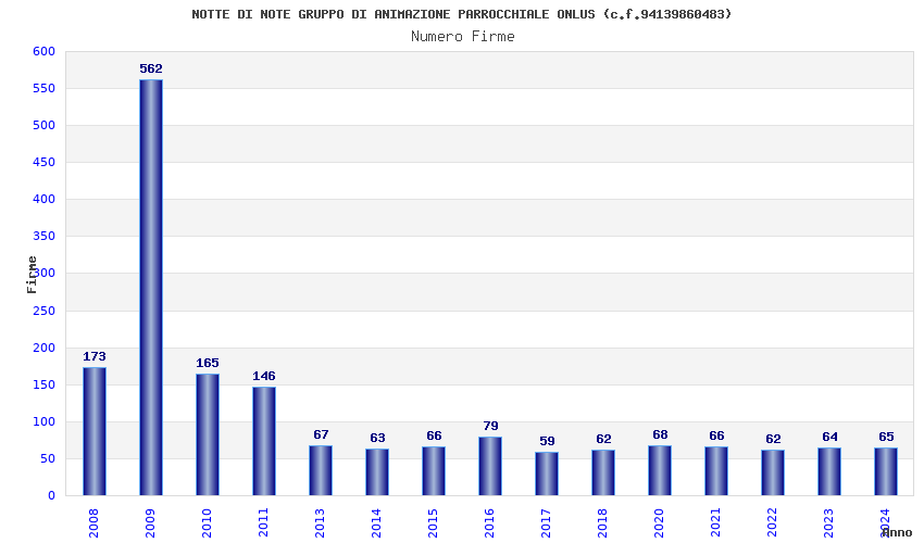 | Anno | Firme | Importi | Media | Naz. | Reg. | Prov. | Comu. |