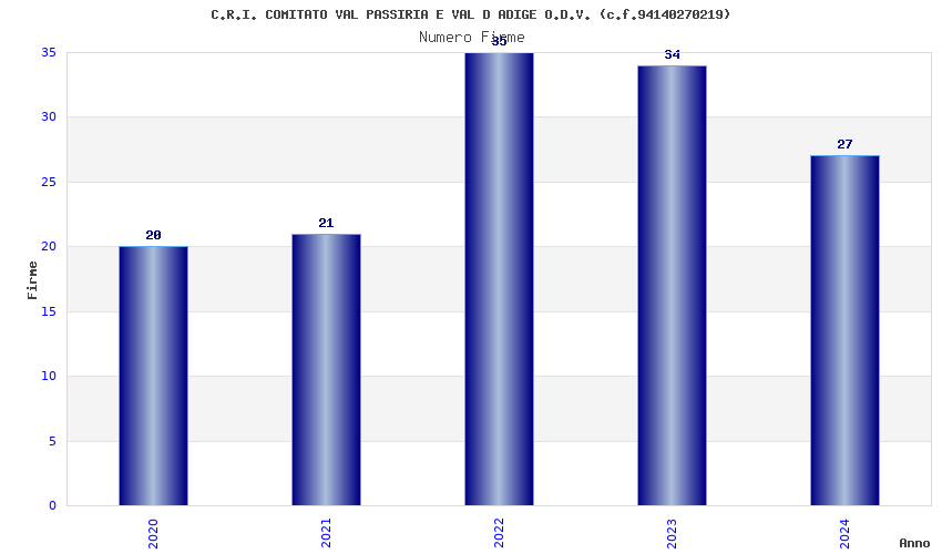 | Anno | Firme | Importi | Media | Naz. | Reg. | Prov. | Comu. |