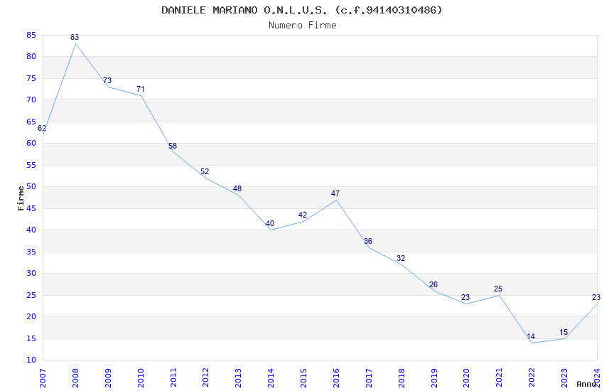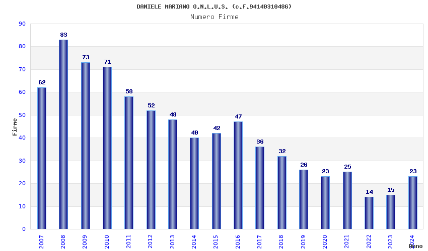 | Anno | Firme | Importi | Media | Naz. | Reg. | Prov. | Comu. |