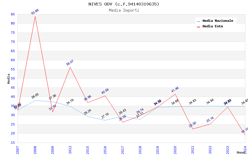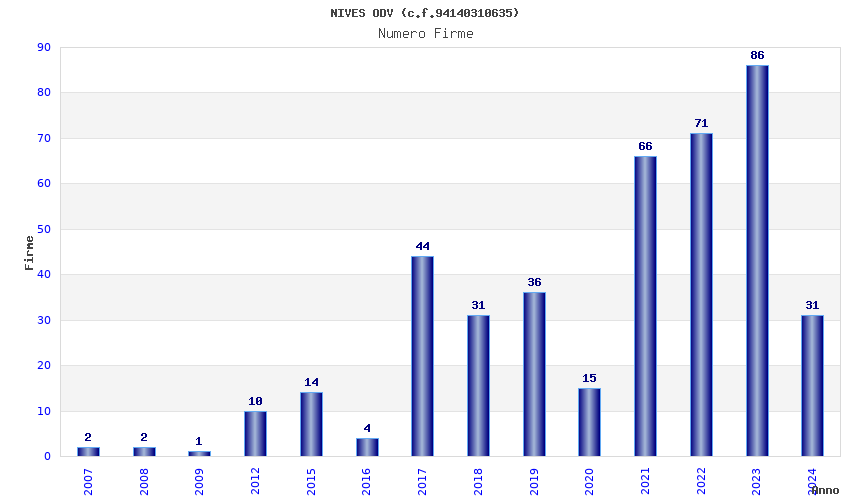 | Anno | Firme | Importi | Media | Naz. | Reg. | Prov. | Comu. |