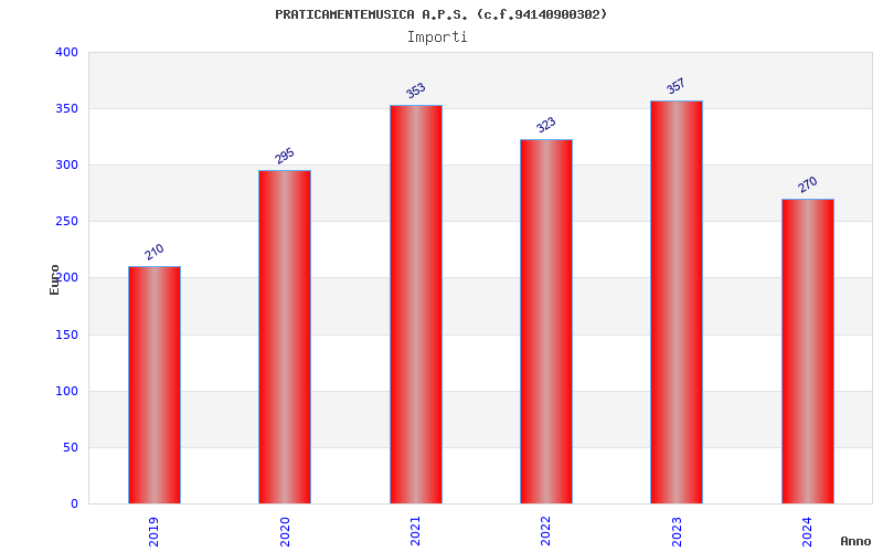 | Anno | Firme | Importi | Media | Naz. | Reg. | Prov. | Comu. |