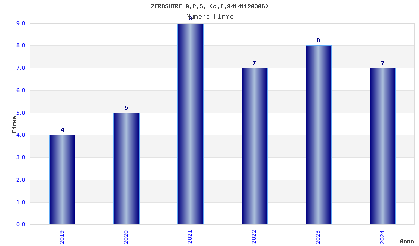 | Anno | Firme | Importi | Media | Naz. | Reg. | Prov. | Comu. |