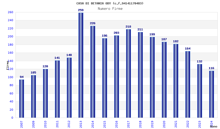 | 2024 | 116 | 3.557,58 | 30,67 | 14.976 | 927 | 289 | 3 |