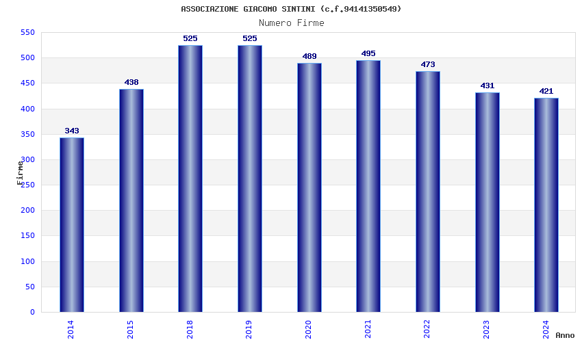 | Anno | Firme | Importi | Media | Naz. | Reg. | Prov. | Comu. |