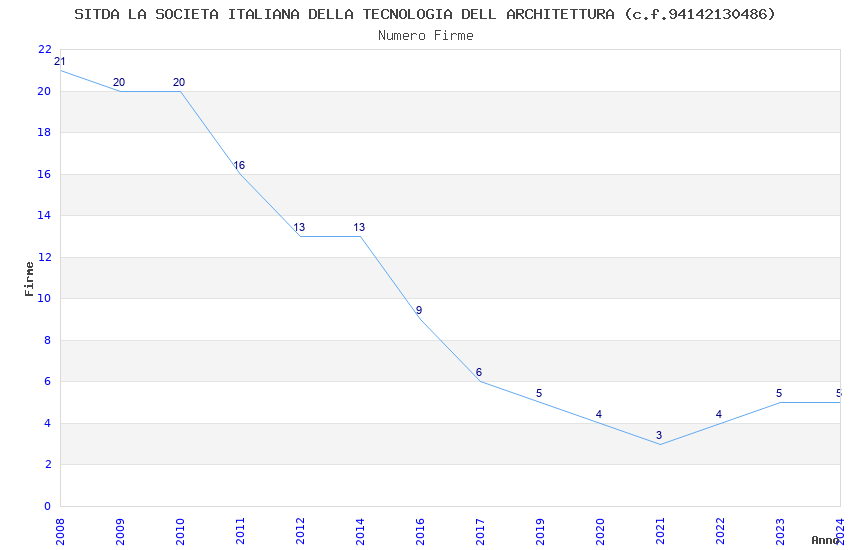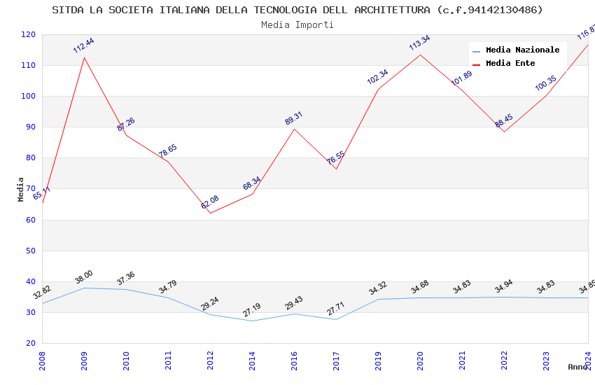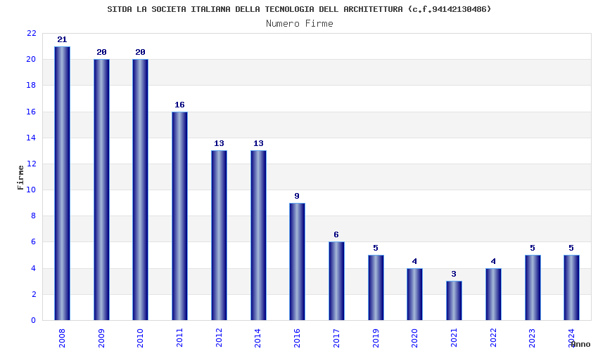 | Anno | Firme | Importi | Media | Naz. | Reg. | Prov. | Comu. |