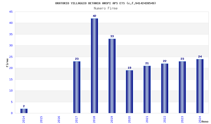| Anno | Firme | Importi | Media | Naz. | Reg. | Prov. | Comu. |