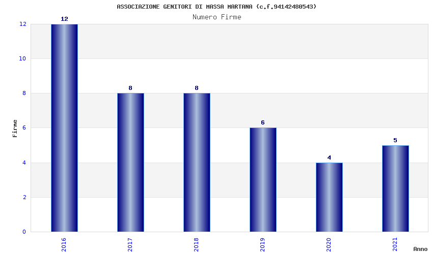 | Anno | Firme | Importi | Media | Naz. | Reg. | Prov. | Comu. |