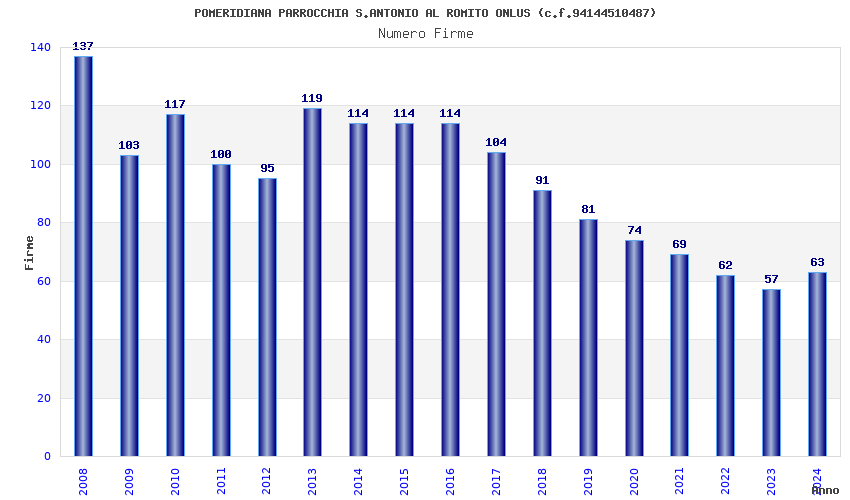 | Anno | Firme | Importi | Media | Naz. | Reg. | Prov. | Comu. |