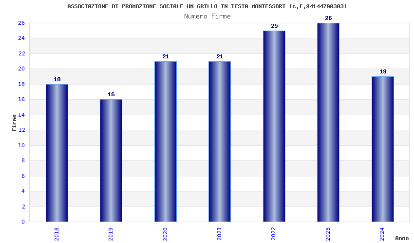 | Anno | Firme | Importi | Media | Naz. | Reg. | Prov. | Comu. |