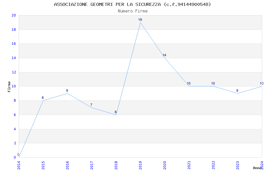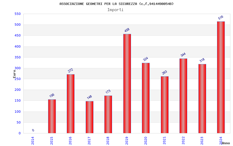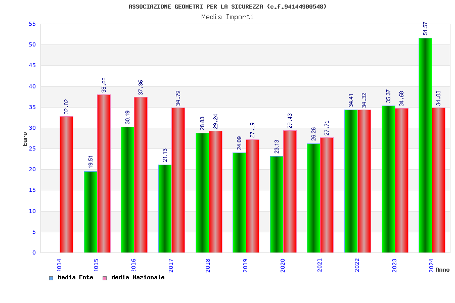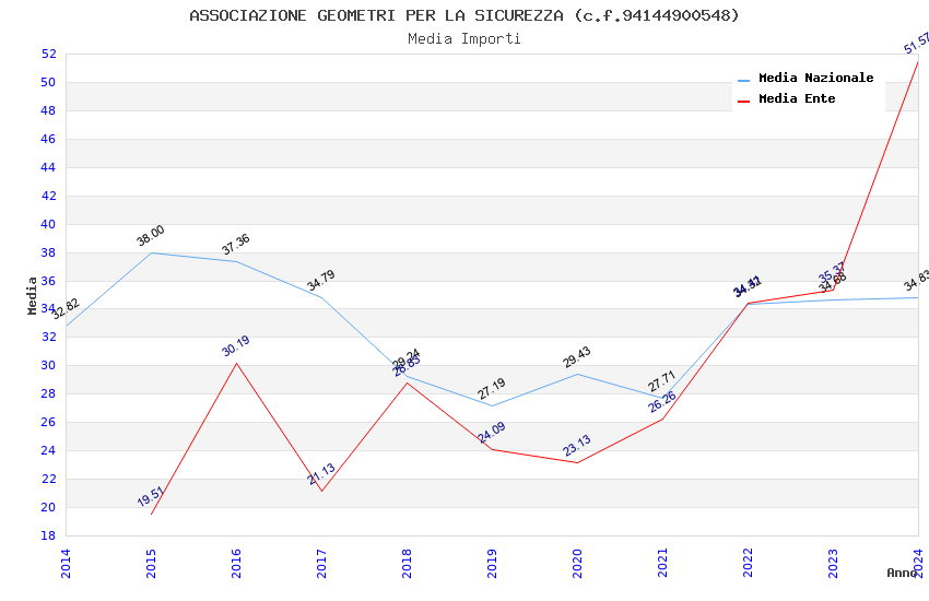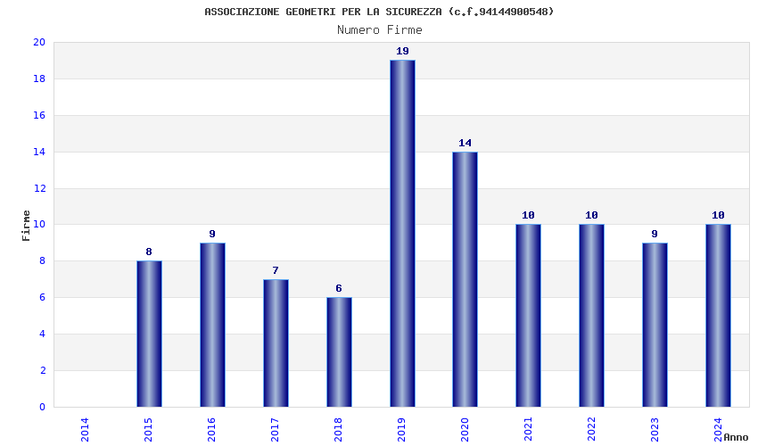 | Anno | Firme | Importi | Media | Naz. | Reg. | Prov. | Comu. |