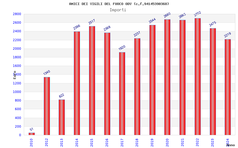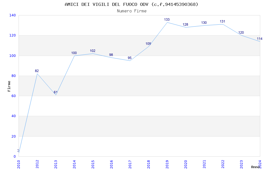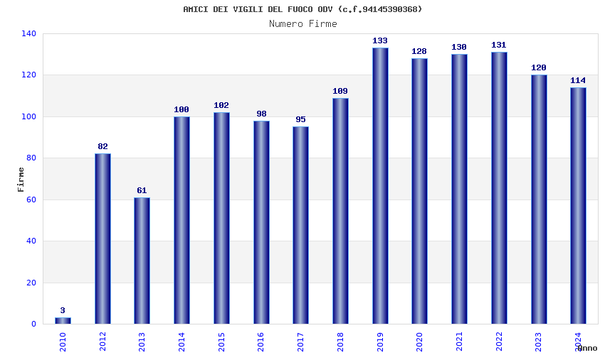| Anno | Firme | Importi | Media | Naz. | Reg. | Prov. | Comu. |