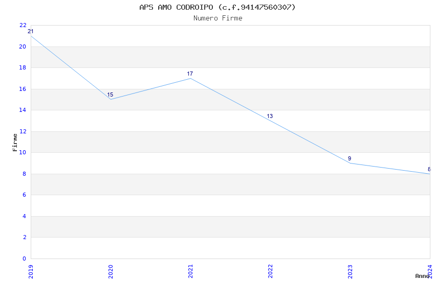 | 2019 | 21 | 463,38 | 22,07 | 46.834 | 1.362 | 607 | 13 |