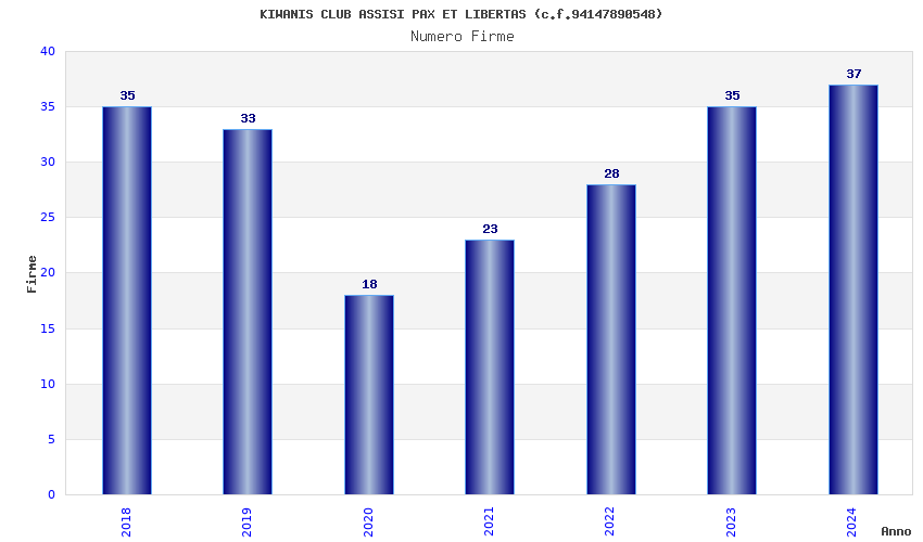 | Anno | Firme | Importi | Media | Naz. | Reg. | Prov. | Comu. |