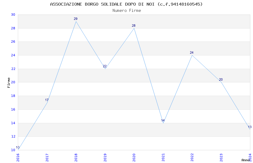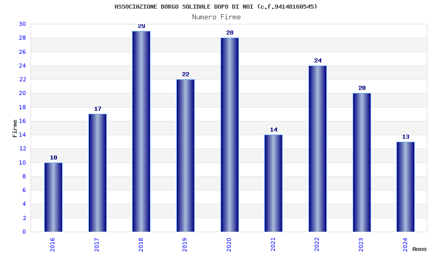 | Anno | Firme | Importi | Media | Naz. | Reg. | Prov. | Comu. |
