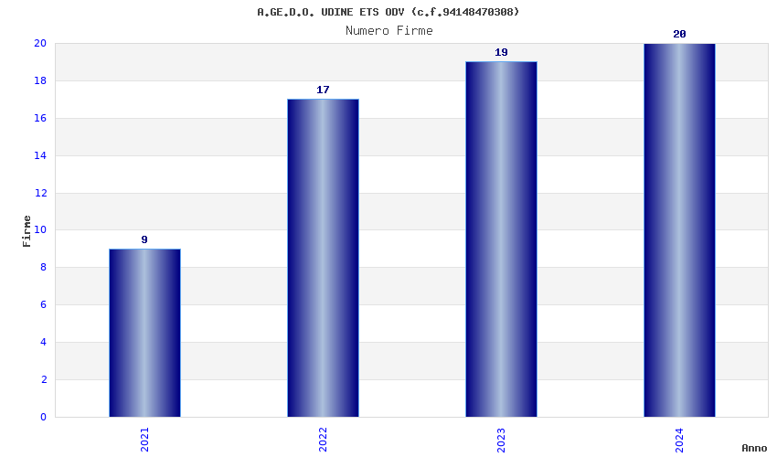 | Anno | Firme | Importi | Media | Naz. | Reg. | Prov. | Comu. |