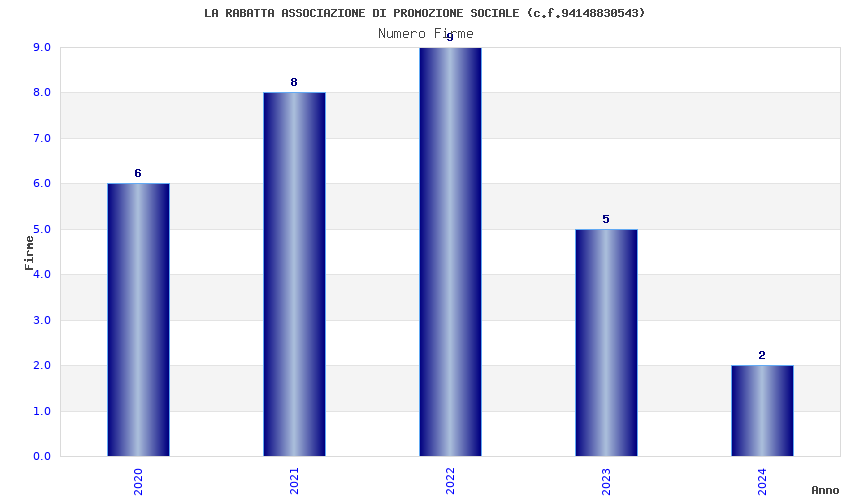 | Anno | Firme | Importi | Media | Naz. | Reg. | Prov. | Comu. |
