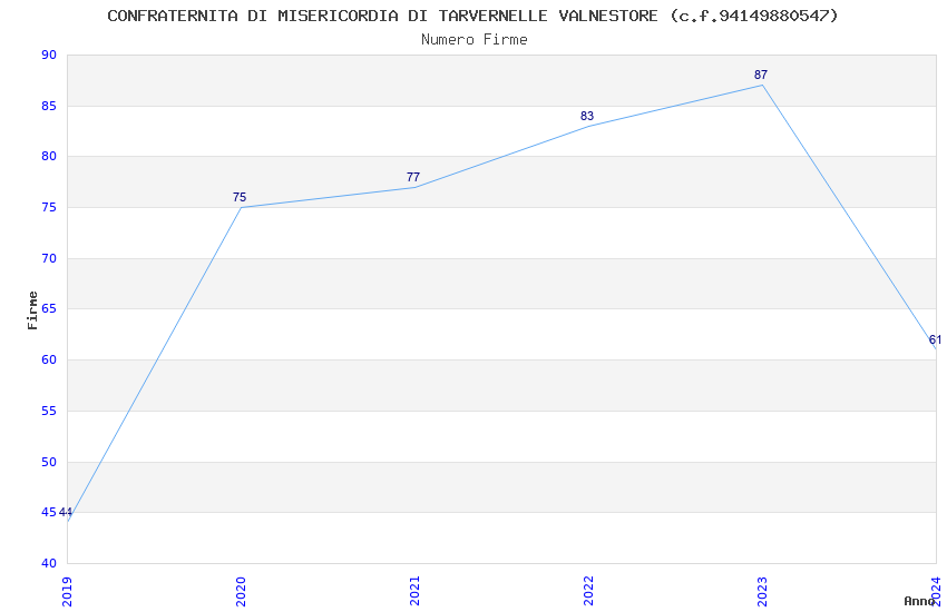 | 2019 | 44 | 827,67 | 18,81 | 38.538 | 562 | 453 | 3 |