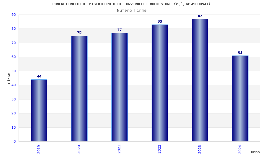 | Anno | Firme | Importi | Media | Naz. | Reg. | Prov. | Comu. |