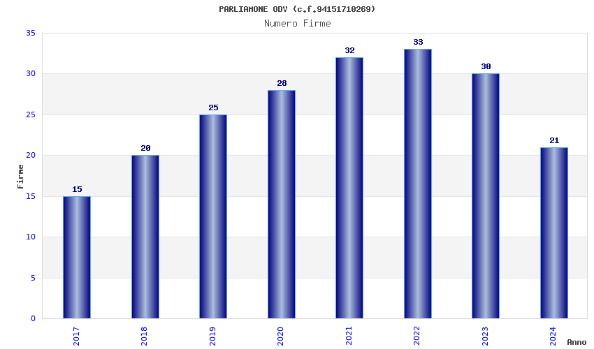 | Anno | Firme | Importi | Media | Naz. | Reg. | Prov. | Comu. |