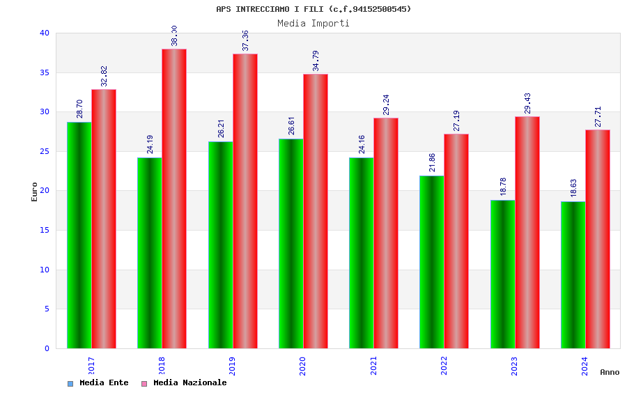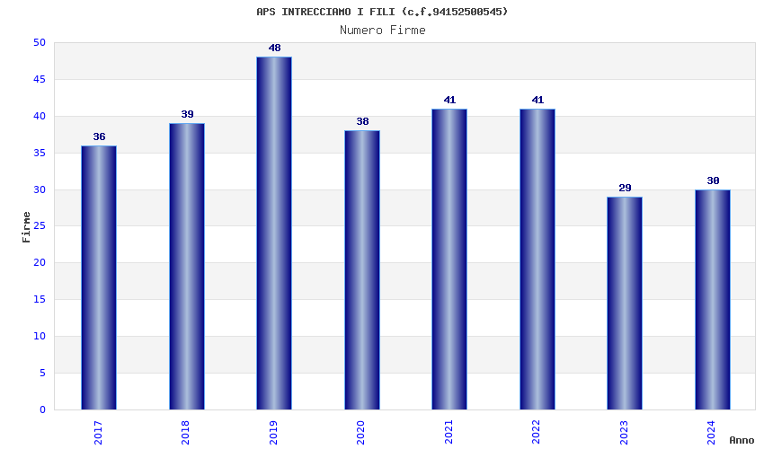 | Anno | Firme | Importi | Media | Naz. | Reg. | Prov. | Comu. |