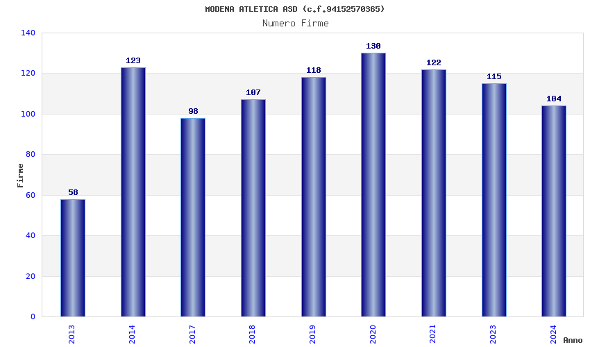| 2020 | 130 | 3.860,34 | 29,69 | 14.439 | 1.260 | 195 | 17 |