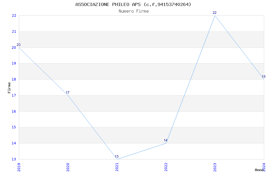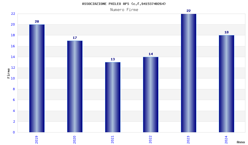 | Anno | Firme | Importi | Media | Naz. | Reg. | Prov. | Comu. |