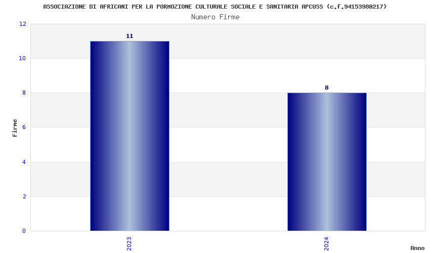 | Anno | Firme | Importi | Media | Naz. | Reg. | Prov. | Comu. |