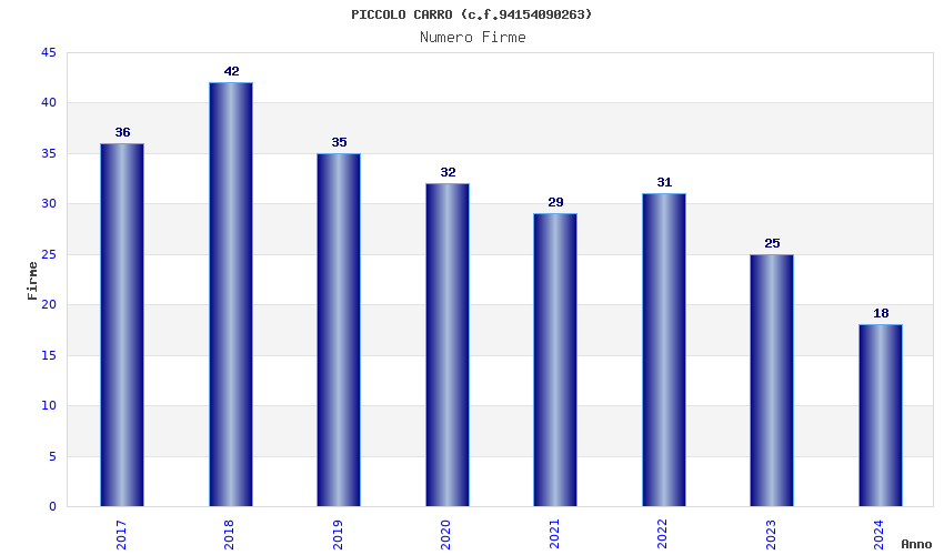 | Anno | Firme | Importi | Media | Naz. | Reg. | Prov. | Comu. |