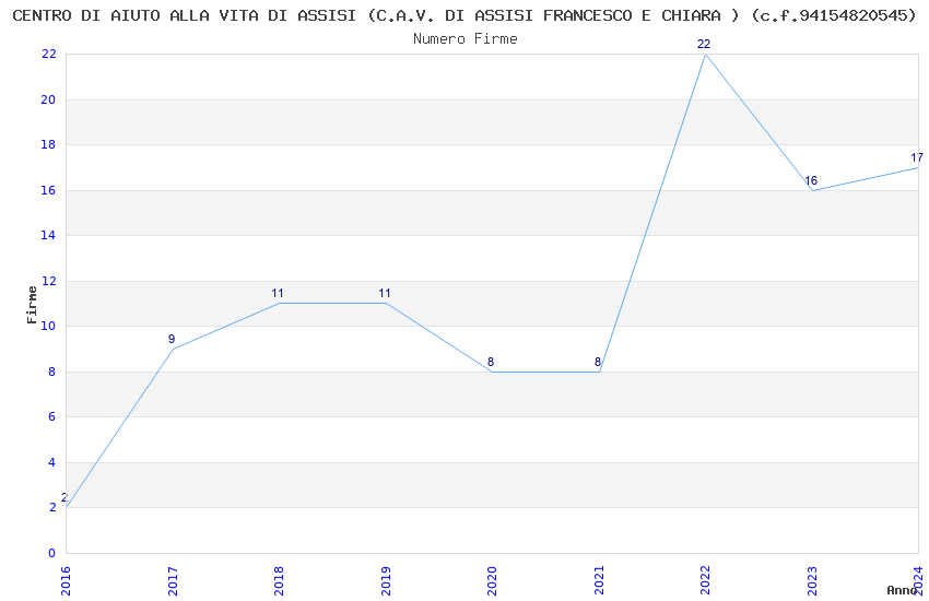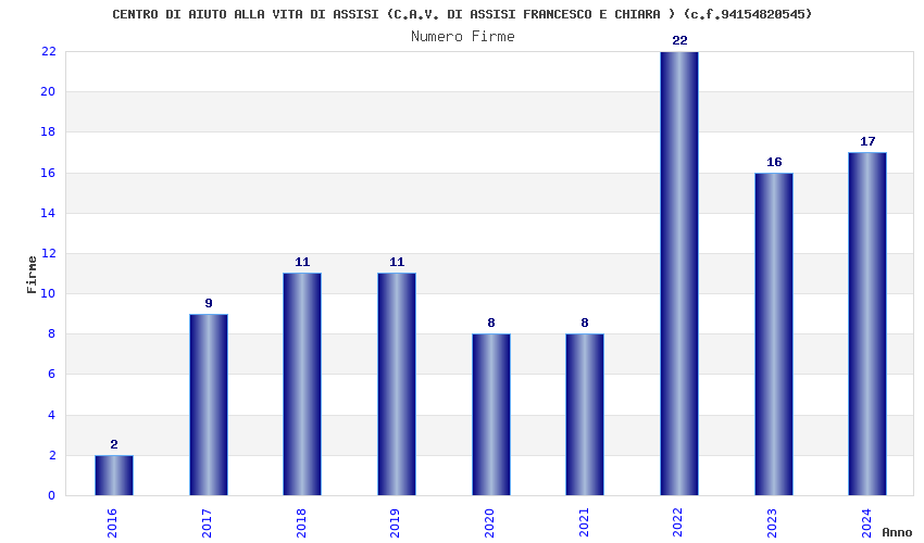 | Anno | Firme | Importi | Media | Naz. | Reg. | Prov. | Comu. |
