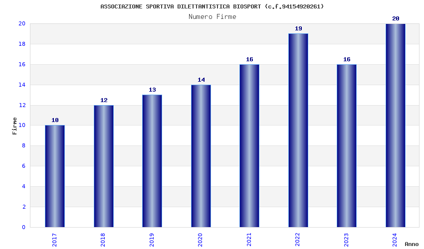 | Anno | Firme | Importi | Media | Naz. | Reg. | Prov. | Comu. |