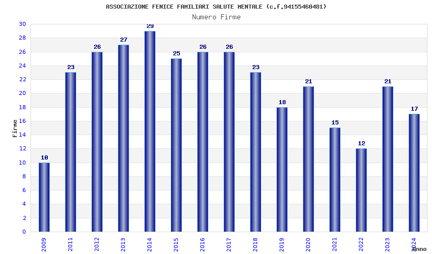 | Anno | Firme | Importi | Media | Naz. | Reg. | Prov. | Comu. |