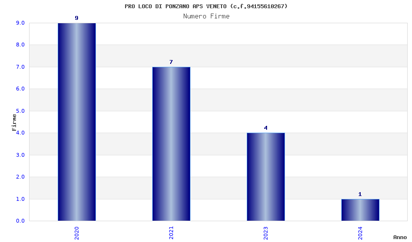 | Anno | Firme | Importi | Media | Naz. | Reg. | Prov. | Comu. |