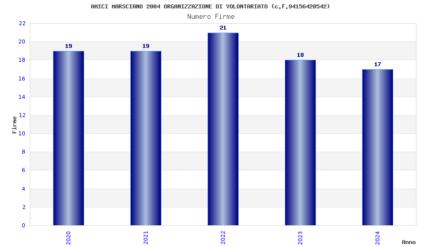 | Anno | Firme | Importi | Media | Naz. | Reg. | Prov. | Comu. |