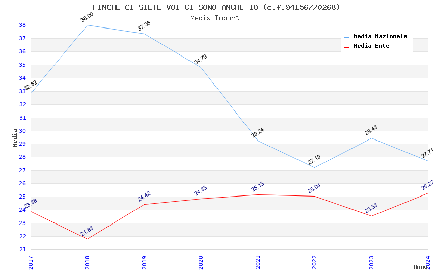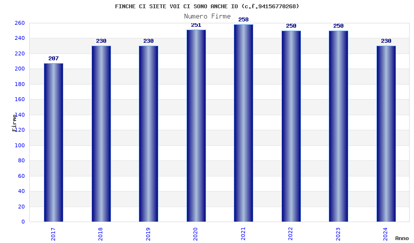 | Anno | Firme | Importi | Media | Naz. | Reg. | Prov. | Comu. |
