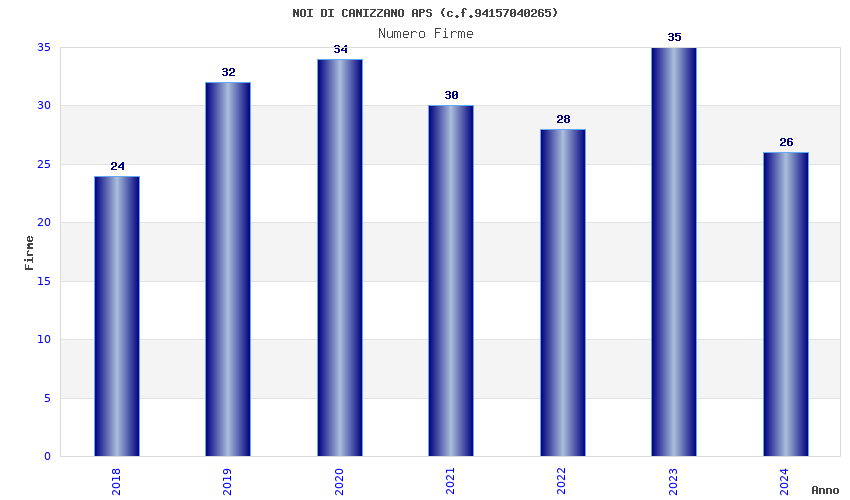 | Anno | Firme | Importi | Media | Naz. | Reg. | Prov. | Comu. |