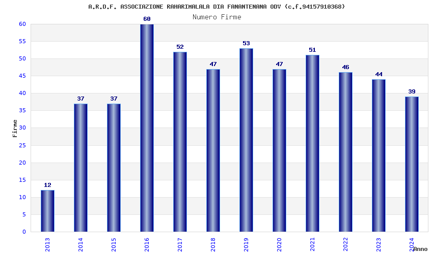 | 2016 | 60 | 2.049,68 | 34,16 | 22.432 | 1.952 | 276 | 105 |