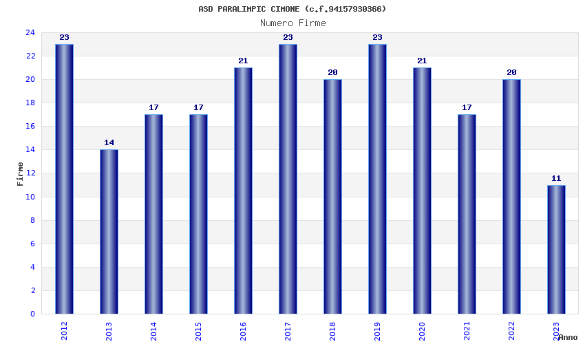 | Anno | Firme | Importi | Media | Naz. | Reg. | Prov. | Comu. |