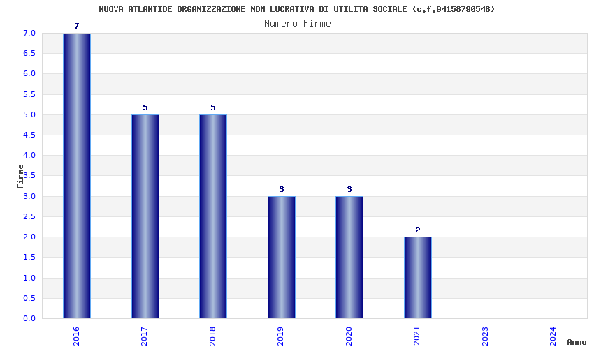 | Anno | Firme | Importi | Media | Naz. | Reg. | Prov. | Comu. |