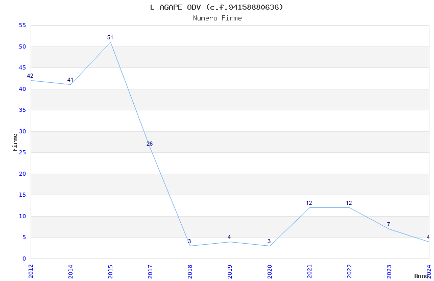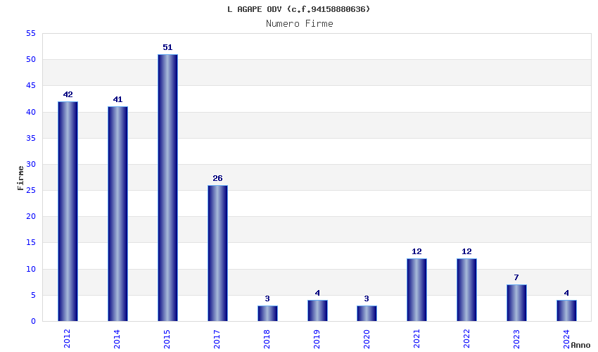 | Anno | Firme | Importi | Media | Naz. | Reg. | Prov. | Comu. |