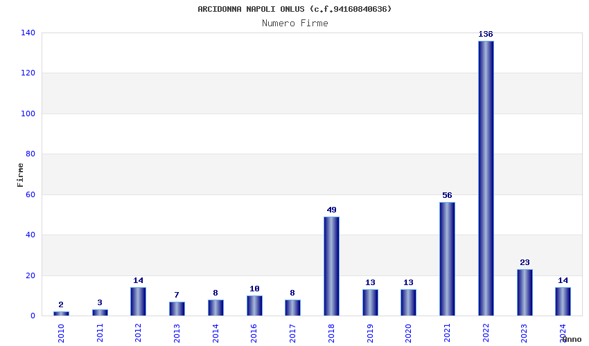 | Anno | Firme | Importi | Media | Naz. | Reg. | Prov. | Comu. |