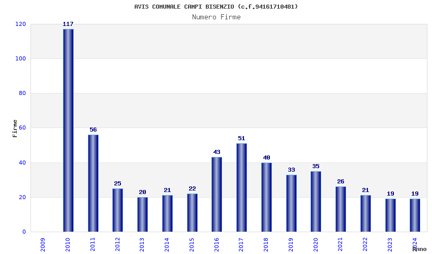 | Anno | Firme | Importi | Media | Naz. | Reg. | Prov. | Comu. |