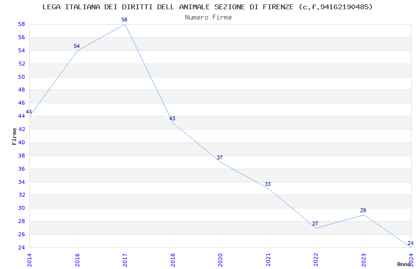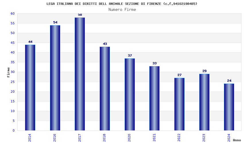 | Anno | Firme | Importi | Media | Naz. | Reg. | Prov. | Comu. |