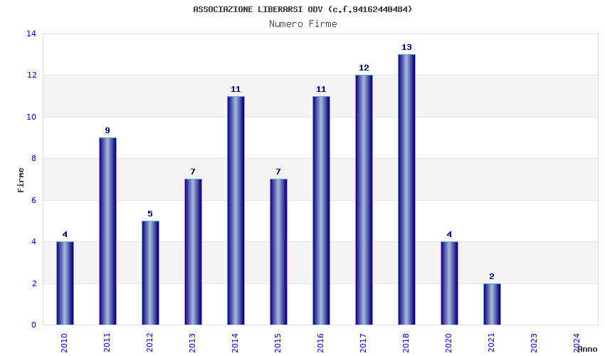 | Anno | Firme | Importi | Media | Naz. | Reg. | Prov. | Comu. |