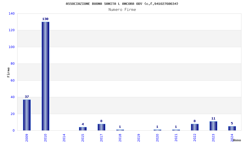 | Anno | Firme | Importi | Media | Naz. | Reg. | Prov. | Comu. |