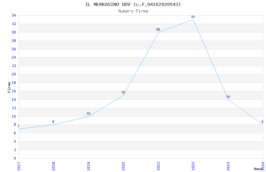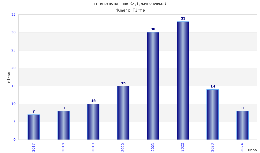 | Anno | Firme | Importi | Media | Naz. | Reg. | Prov. | Comu. |
