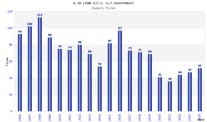 | Anno | Firme | Importi | Media | Naz. | Reg. | Prov. | Comu. |